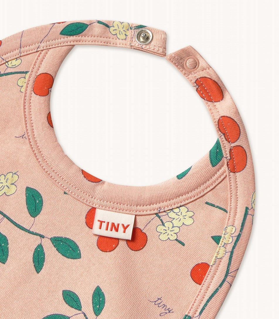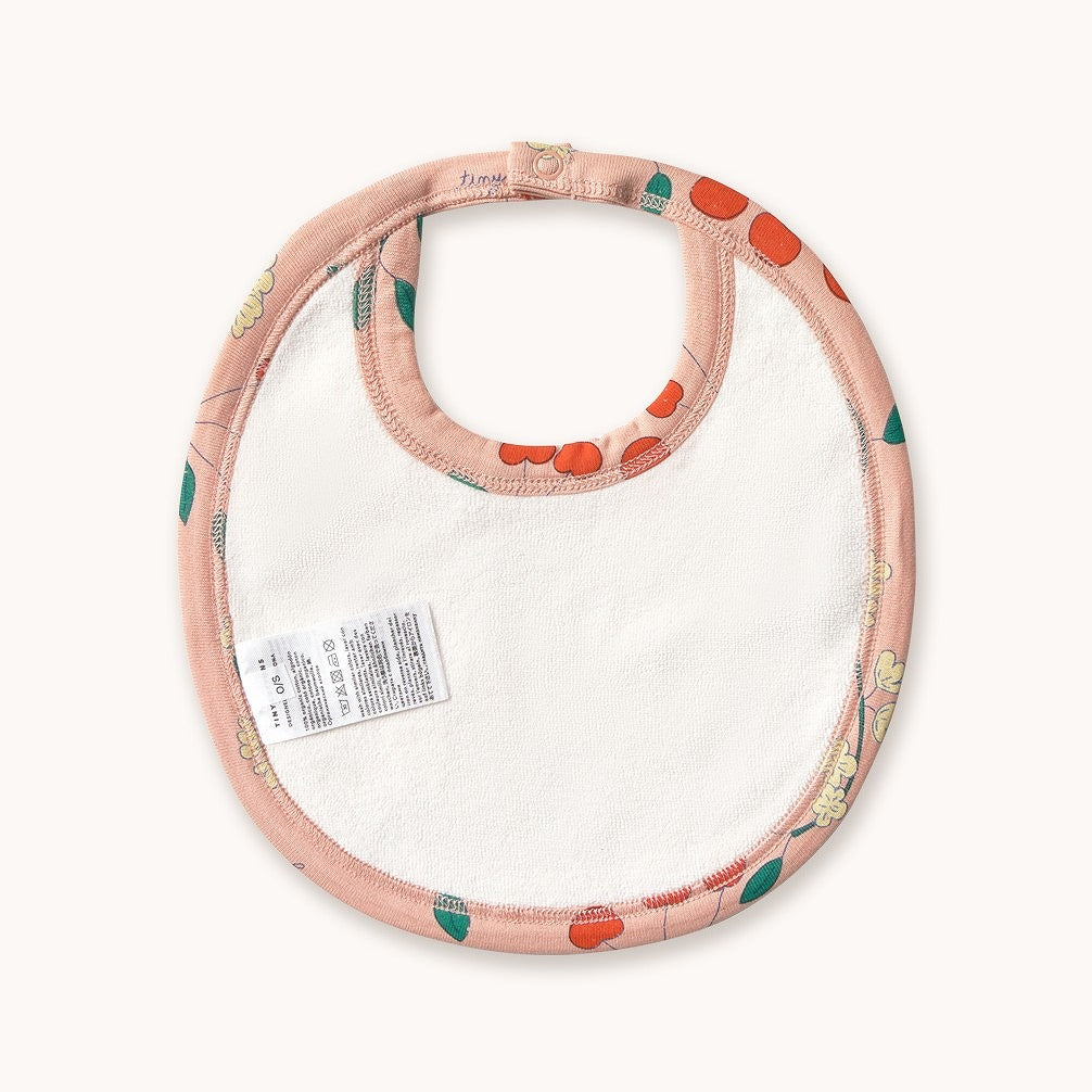 ワイルドローズのベースに、さくらんぼと花柄がちりばめられたビブ。