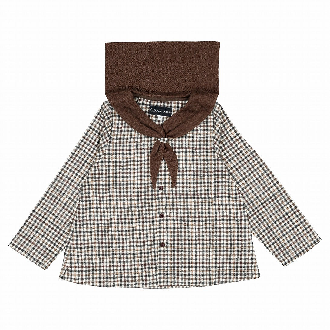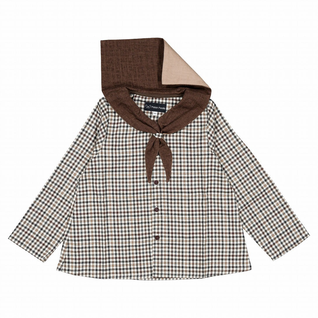ブラウンの襟がアクセントになったセーラーシャツ。
