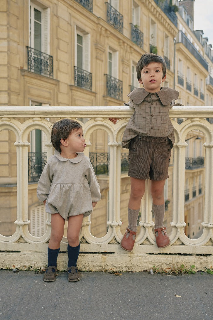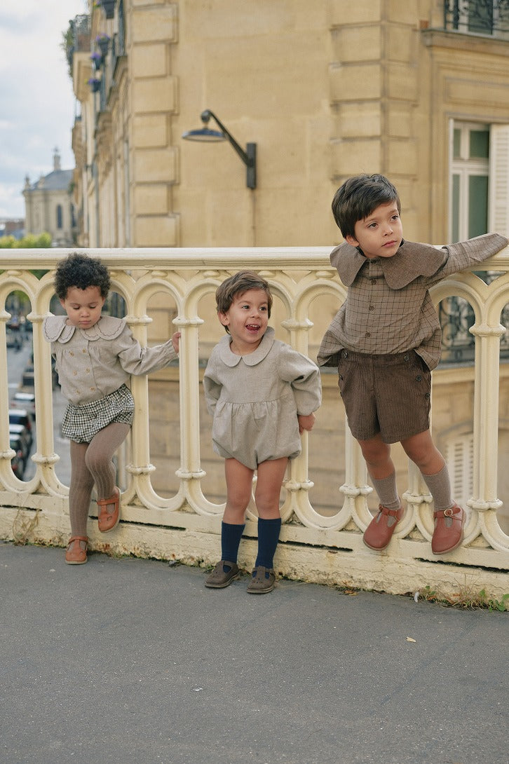 フランスのパリを拠点とする子ども向けファッションブランド。 彼らのデザインのDNAは、コントラストの美しい襟、可愛らしいボタン、小さなリボン…などのディテールに宿り、普段着からセレモニー等の幅広いシーンでお使いいただけるエレガントなデザインを生み出しています。 全ての商品はデザイナーの母が営むマダガスカルの縫製工場で生産され、繊維業界で“Golden hand(金の手)”と称されるほど経験豊富な職人たちにより丁寧に作られています。 その品質とデザイン性の高さで急成長を遂げている注目のブランドです。