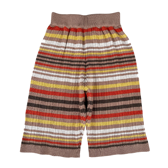 軽やかなミックスリブ素材で編まれたマルチストライプ柄が、シンプルな形に豊かな表情を添える一枚です。