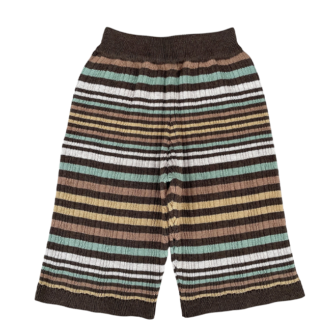 軽やかなミックスリブ素材で編まれたマルチストライプ柄が、シンプルな形に豊かな表情を添える一枚です。