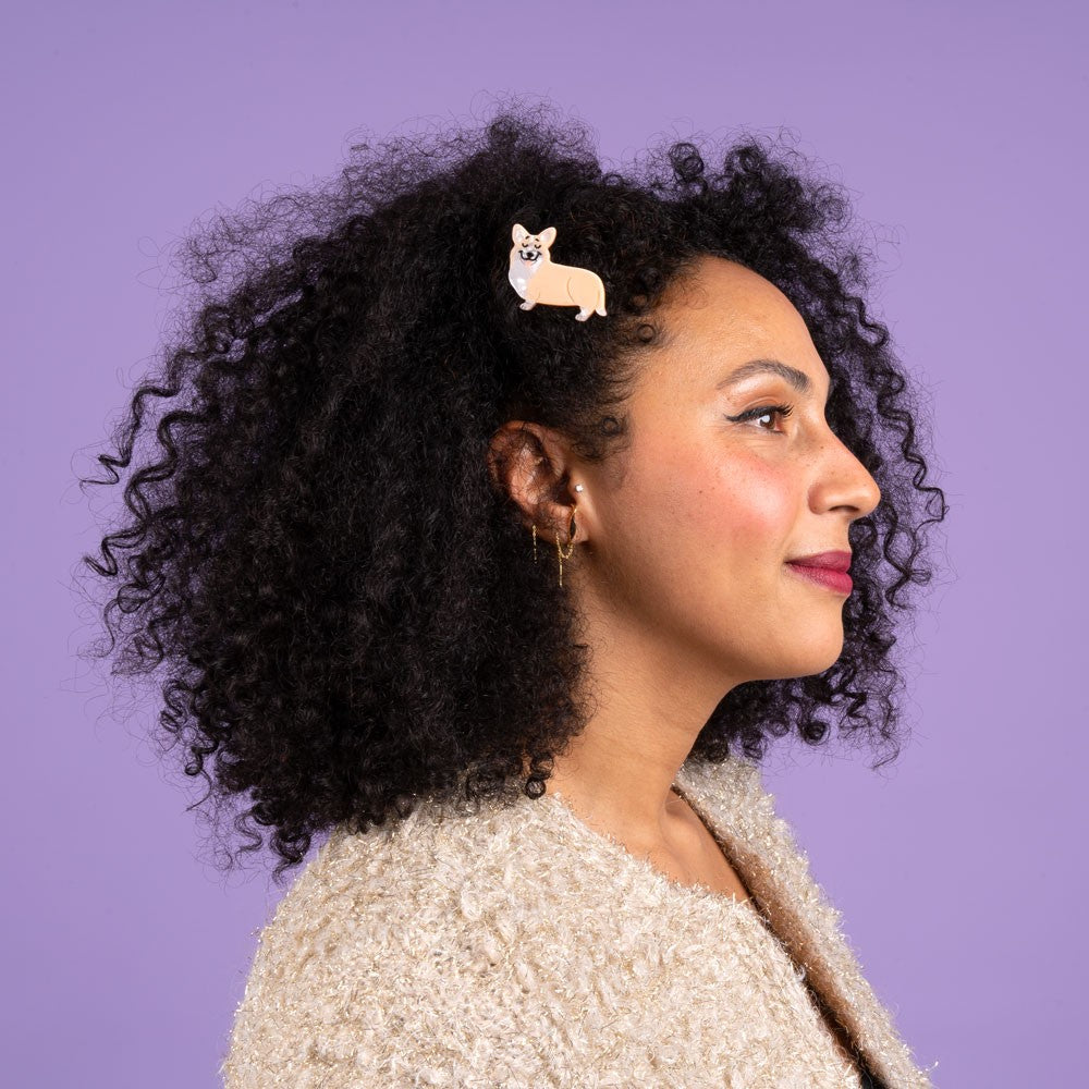 ちょこんとした短めの足で歩く姿がとってもかわいいコーギーのヘアクリップ