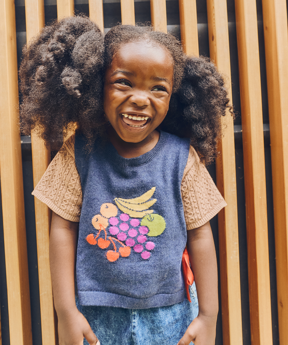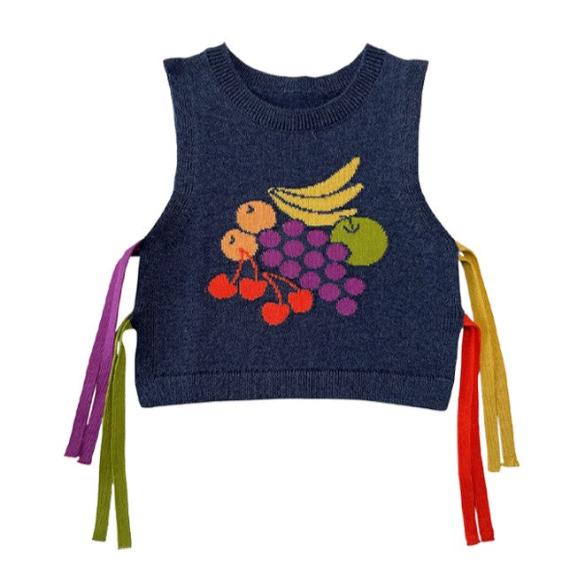 チェリーとブドウをモチーフにしたフルーティーなジャカード編みが魅力。