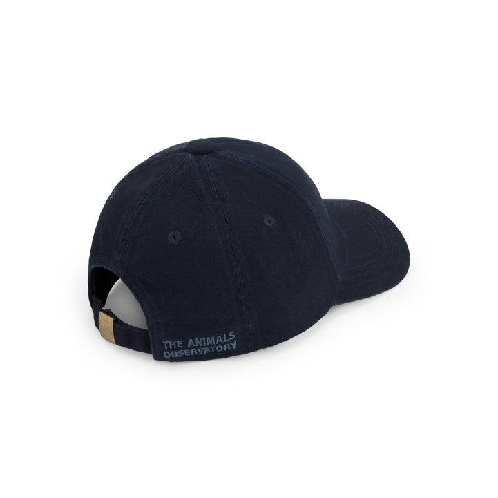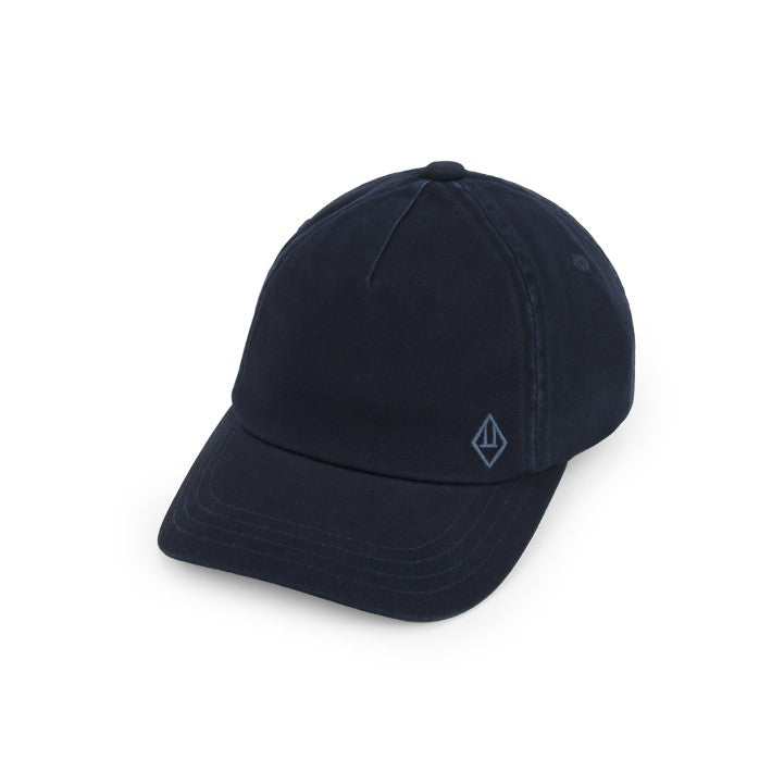 深みのあるネイビーに、フロントの刺繍ロゴがさりげなく映えるキッズキャップです。
