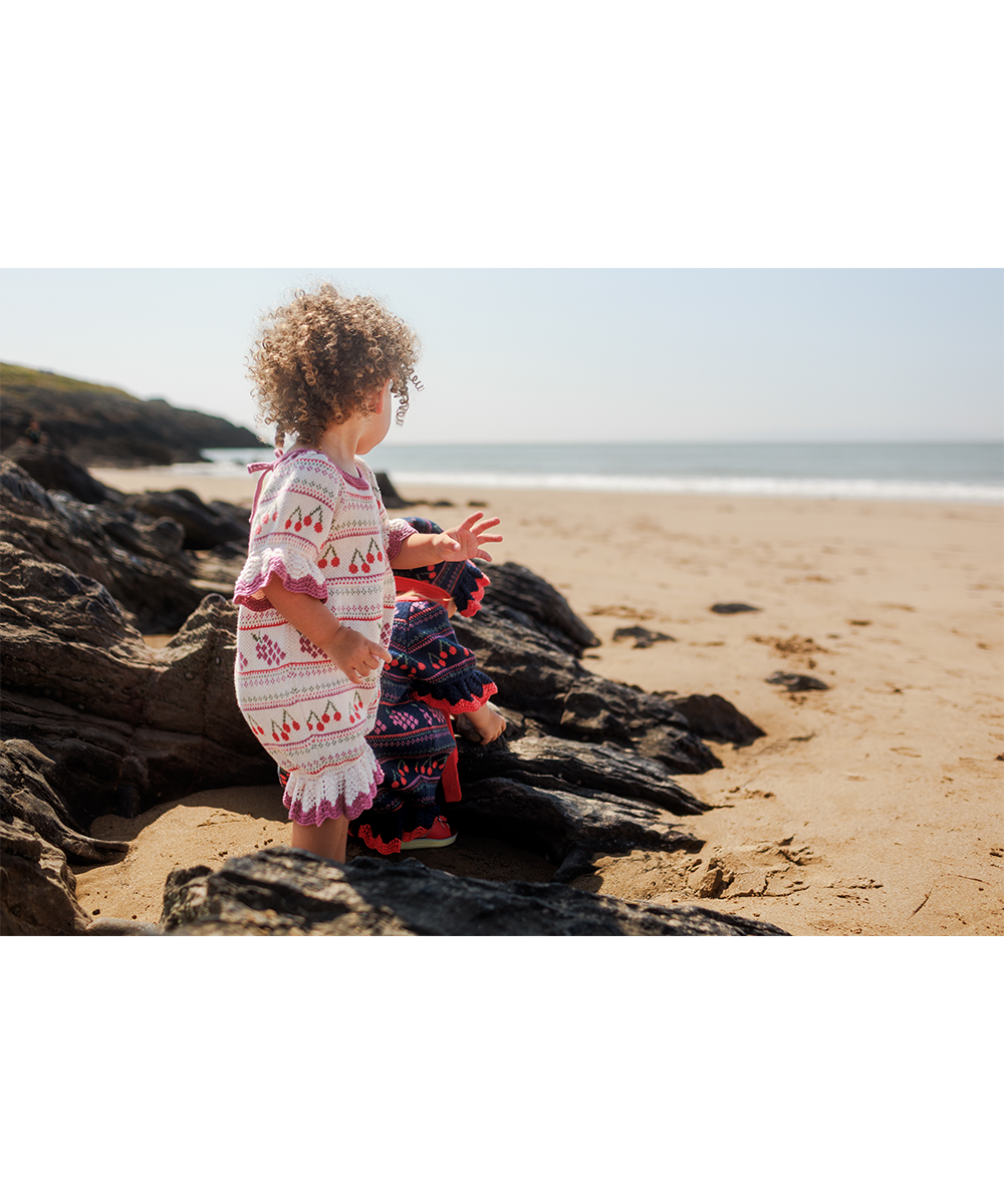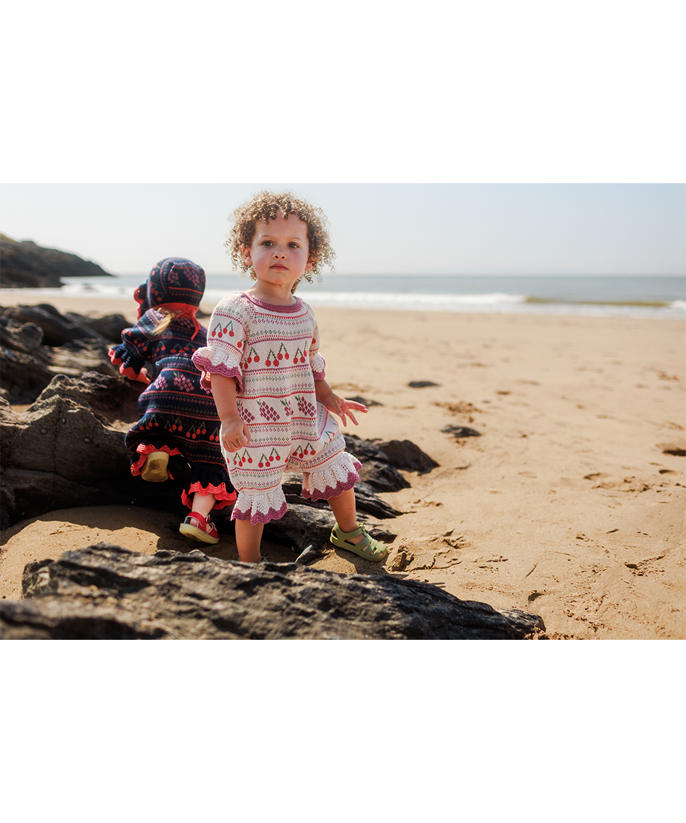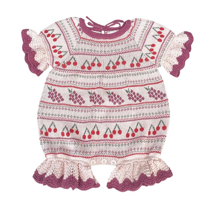 チェリーやブドウをモチーフにしたフルーティなジャカード編みがアクセント。