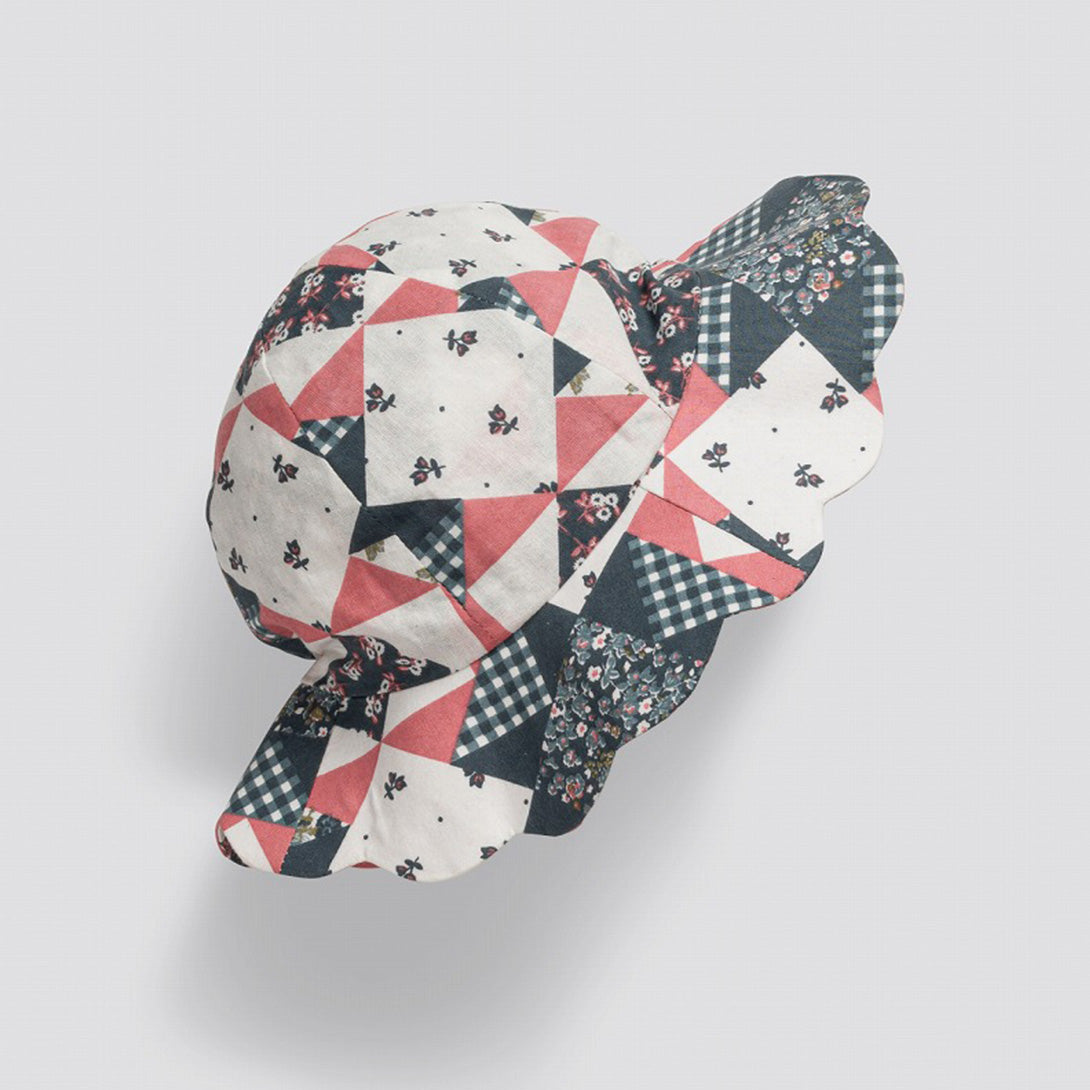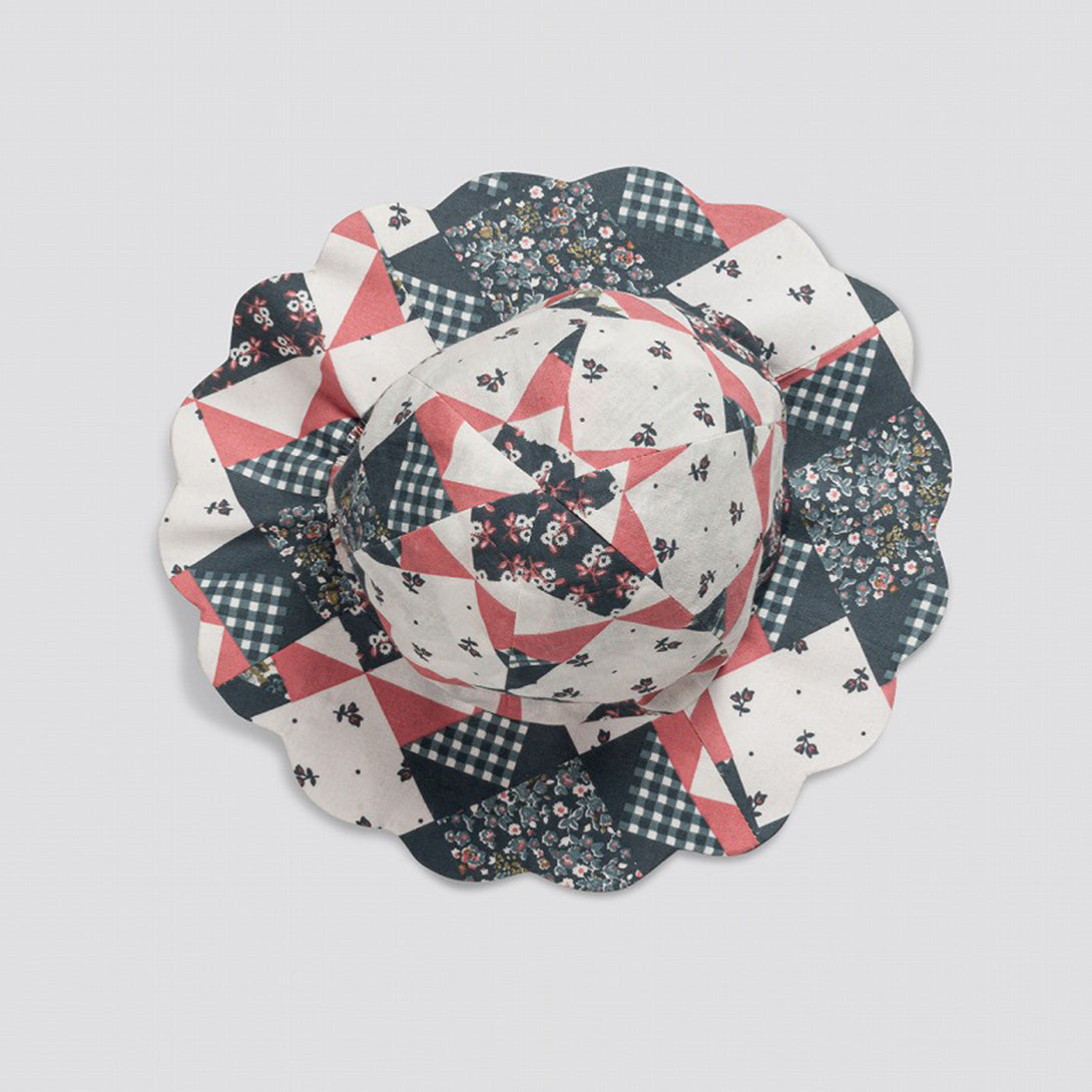 幅広で波型の縁取りが特徴的な、小さなコットン製のサンハット。内側にはゴムが入っており、ぴったりフィットします。