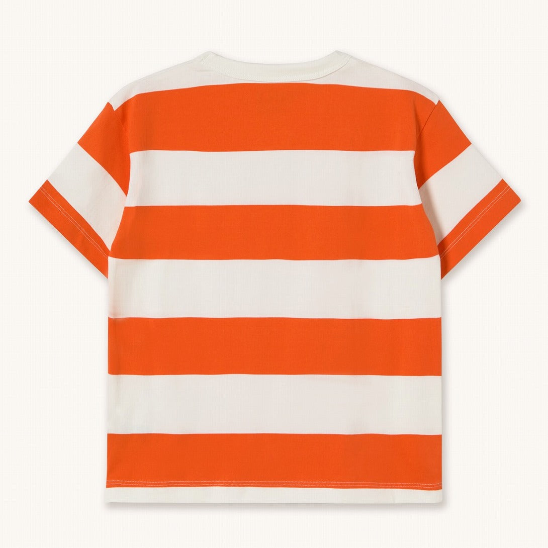 サマーレッド×ホワイトのボーダーが印象的なTシャツ。