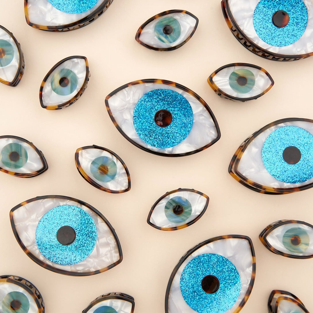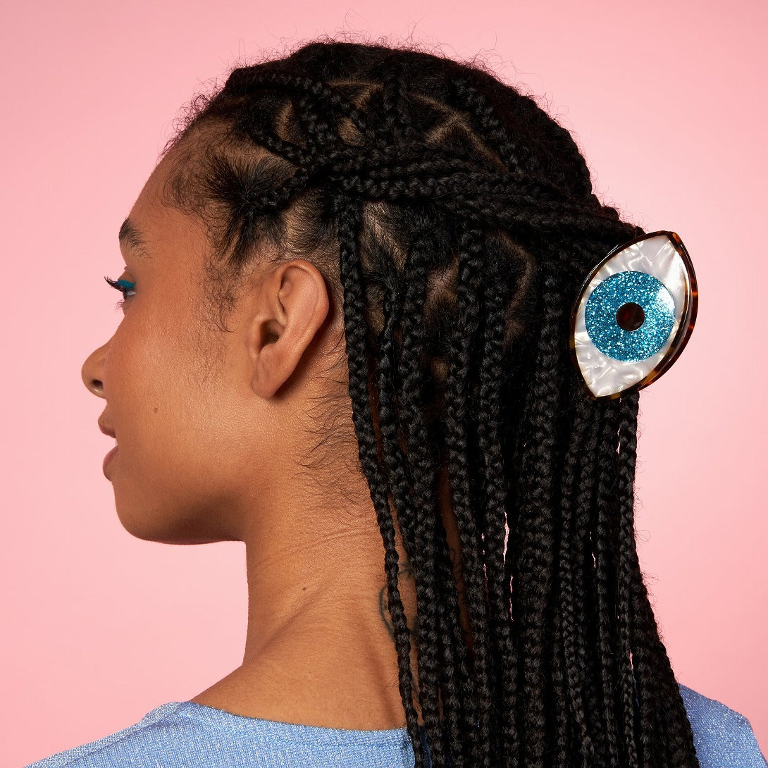 インパクトたっぷりな目の形をしたヘアクリップのキラキラバージョン