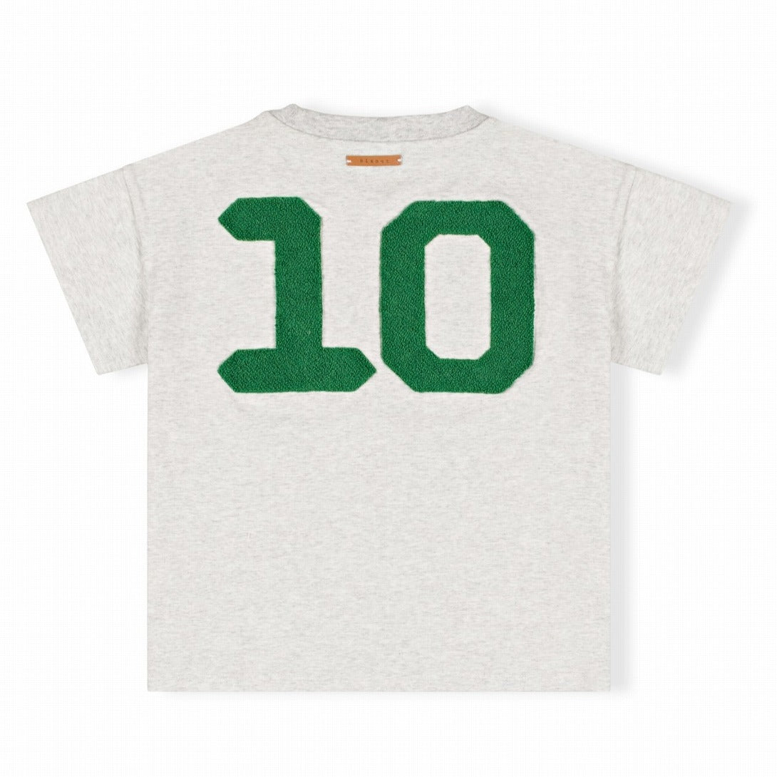背面に大胆にあしらわれたグリーンの“10”ナンバーが印象的なTシャツ。