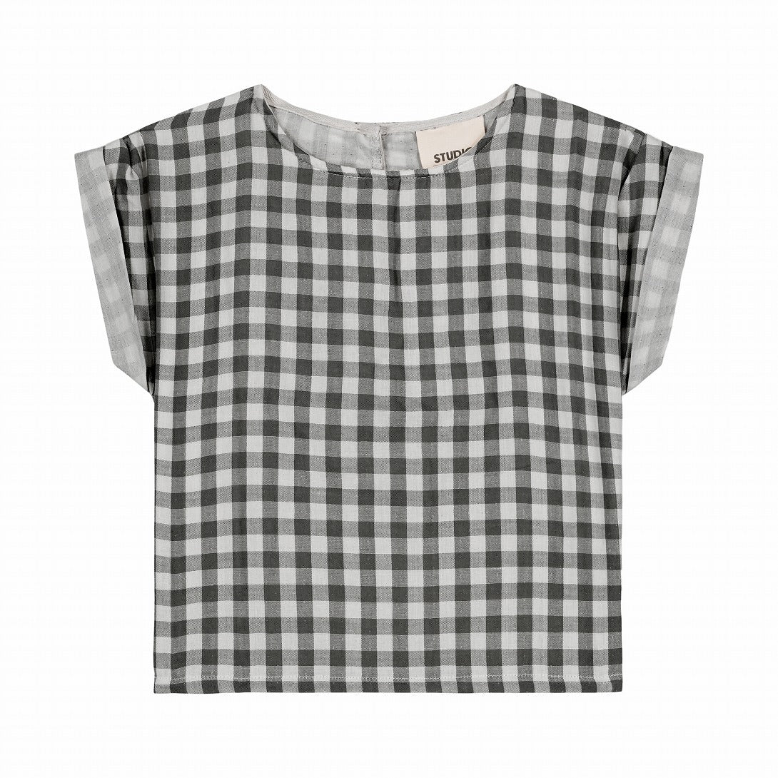 オーガニックコットンガーゼの半袖ブラウス。