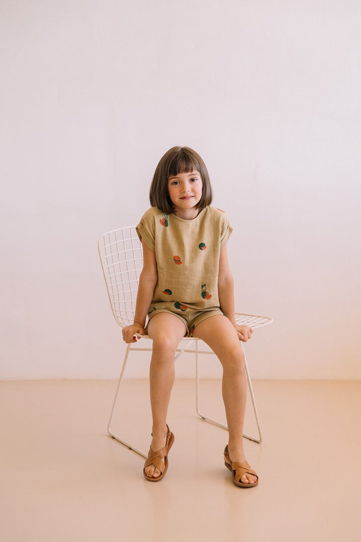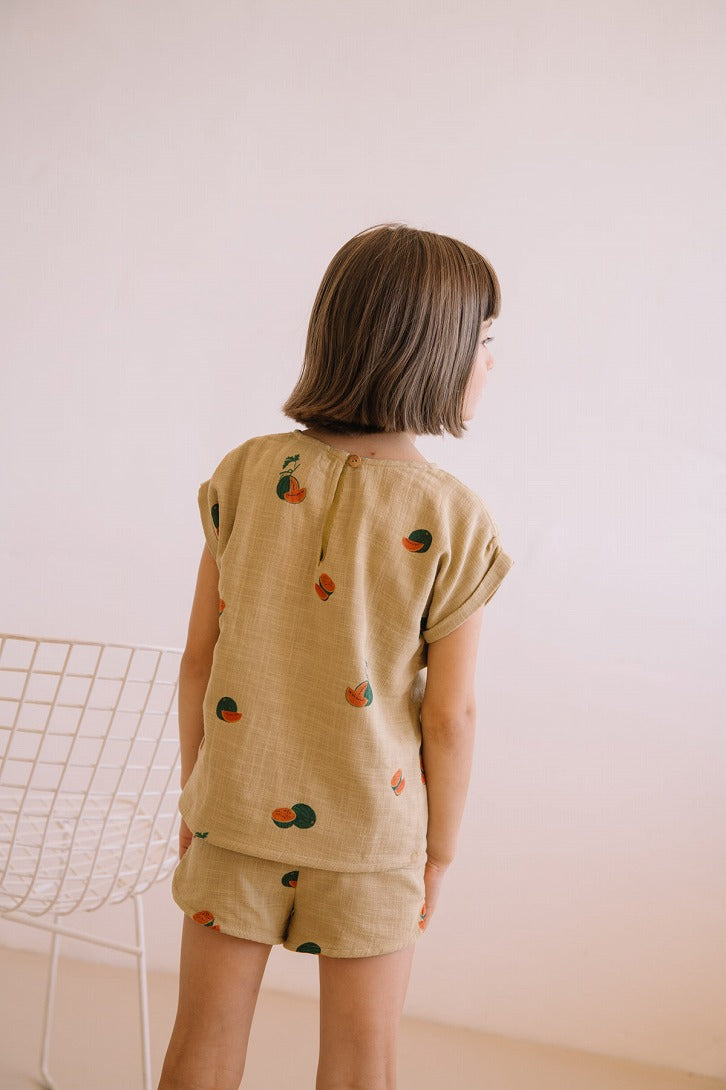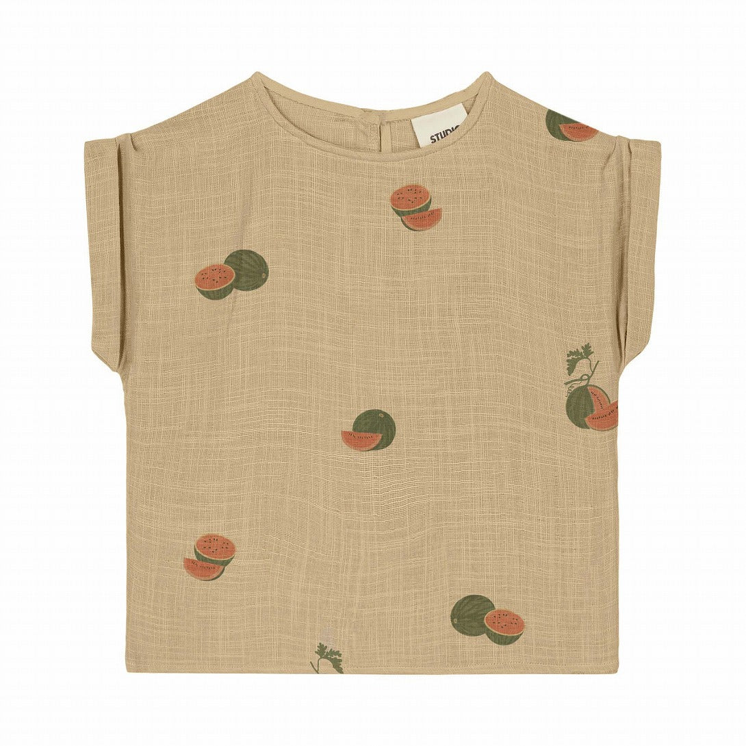 オーガニックコットンガーゼの半袖ブラウス。