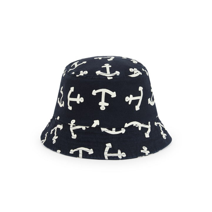 深みのあるブルーにアンカーモチーフが映える、バケットハットです。