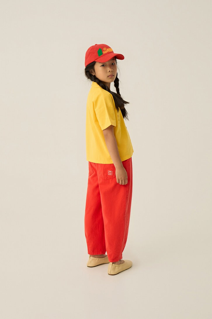 鮮やかなレッドカラーに、フロントのグラフィックが映えるデザイン。