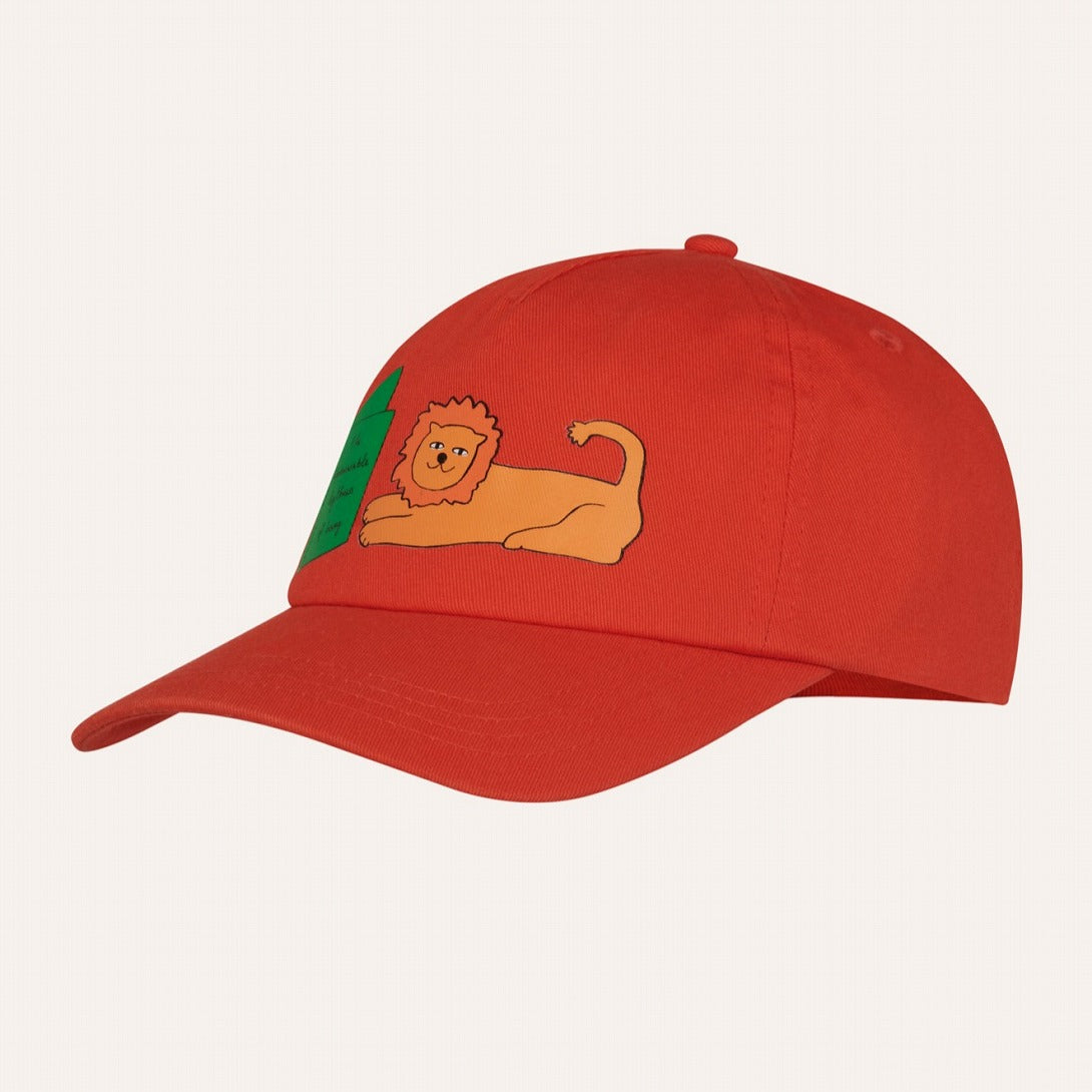 ライオンと木のイラストが目を引く、遊び心たっぷりのキャップ。