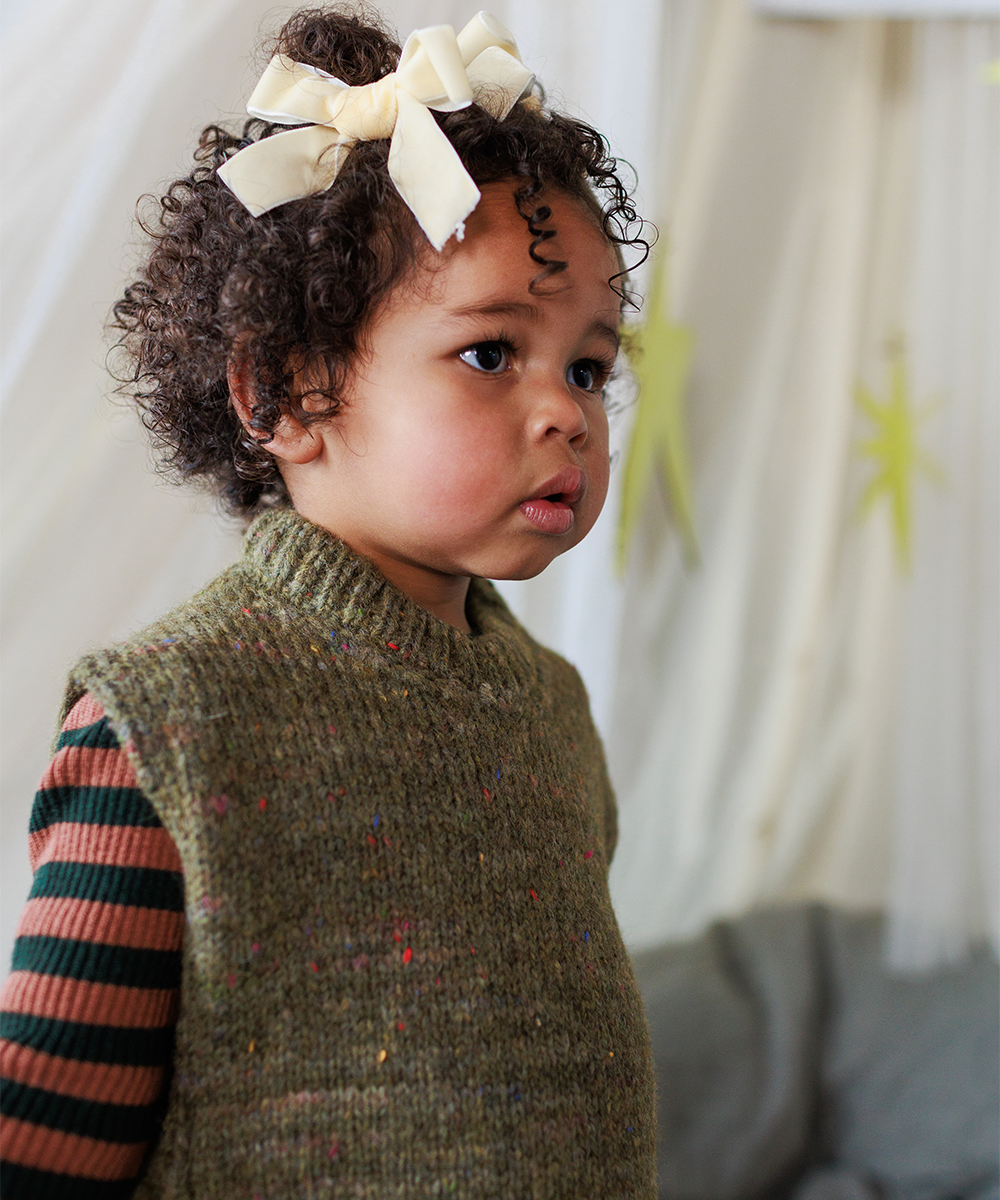 リブ編みの軽やかなニットで、重ね着にもお出かけにも活躍します。