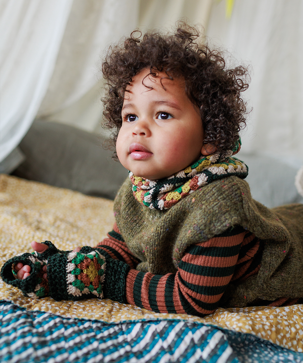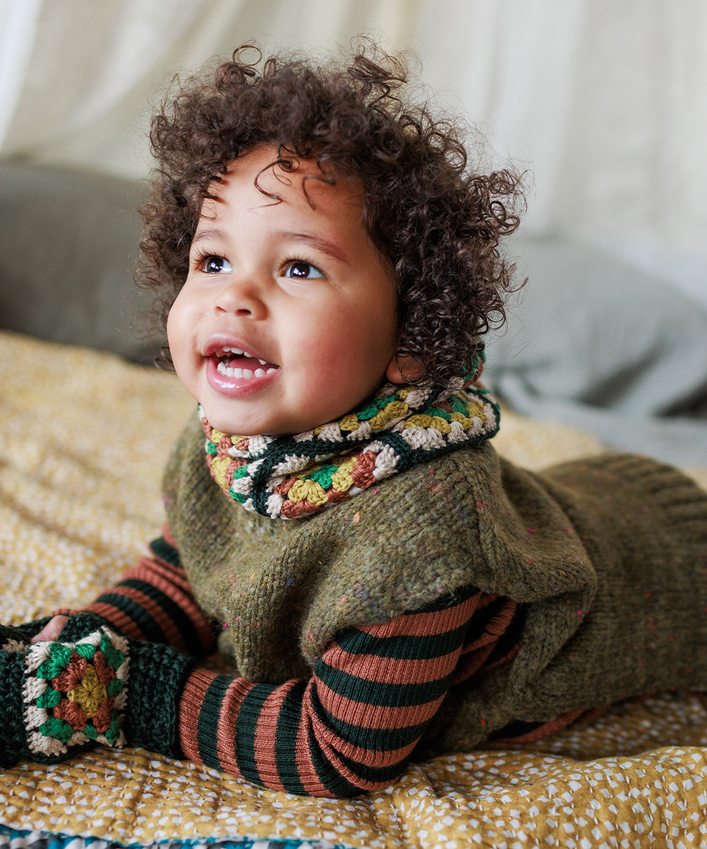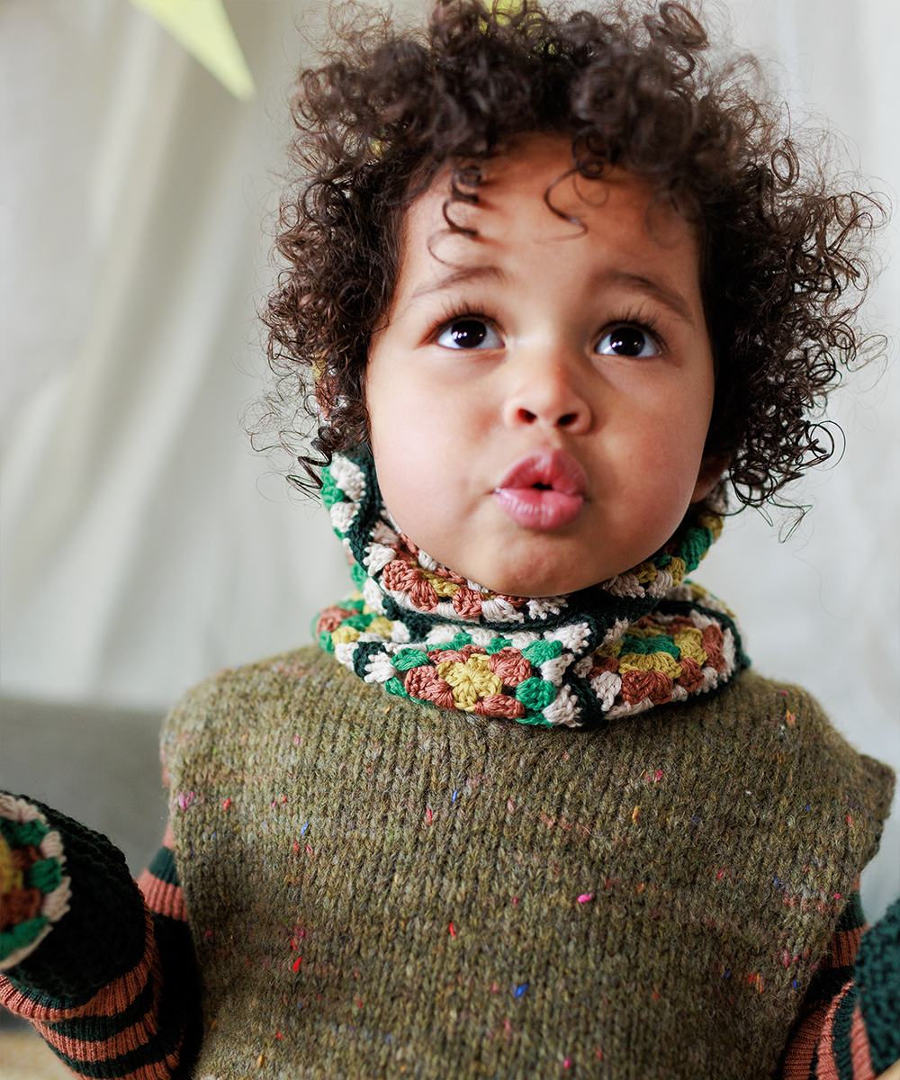 ウェールズ伝統のタペストリー柄と、シンプルで重ね着しやすいリブ編みニットを組み合わせた独自のスタイルを提案しています。